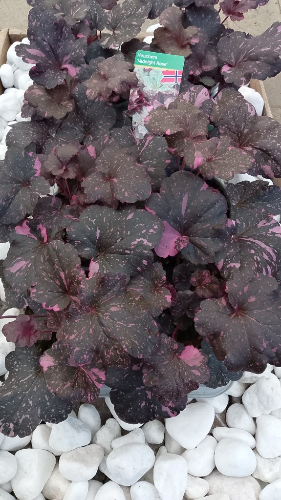 Alunrot 'Midnight Rose' (Heuchera 'Midnight Rose') er en dekorativ staude kjent for sitt iøynefallende bladverk og kompakte vekstform.