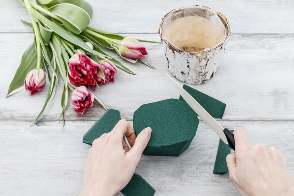 Vannabsorberende skum som brukes til å holde blomster friske i buketter og dekorasjoner. Det er porøst og kan suge til seg vann, slik at stilkene får jevn fuktighet over tid. Blomsterskum gjør det lettere å forme og plassere blomster, og brukes ofte i blomsterarrangementer, kranser og borddekorasjoner for å sikre at blomstene holder seg fine lenge.
