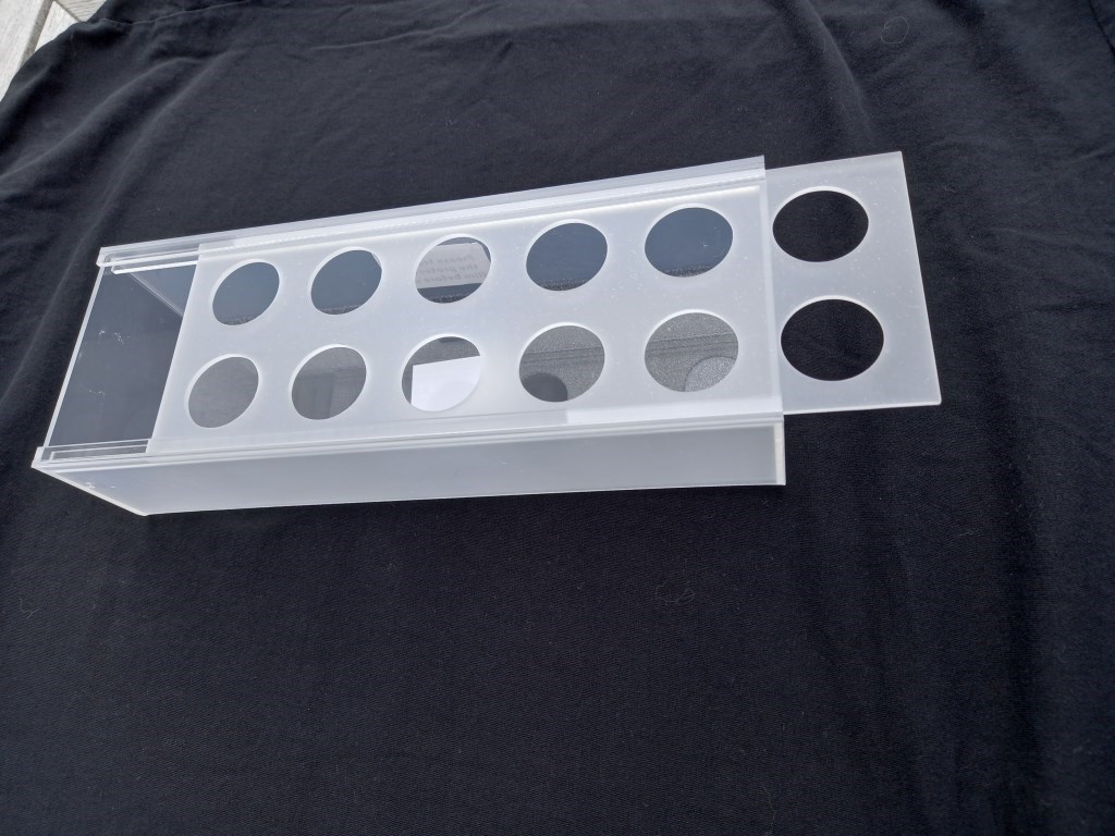 Laget av acrylplast (obs bildet med blomster er en litt større variant)