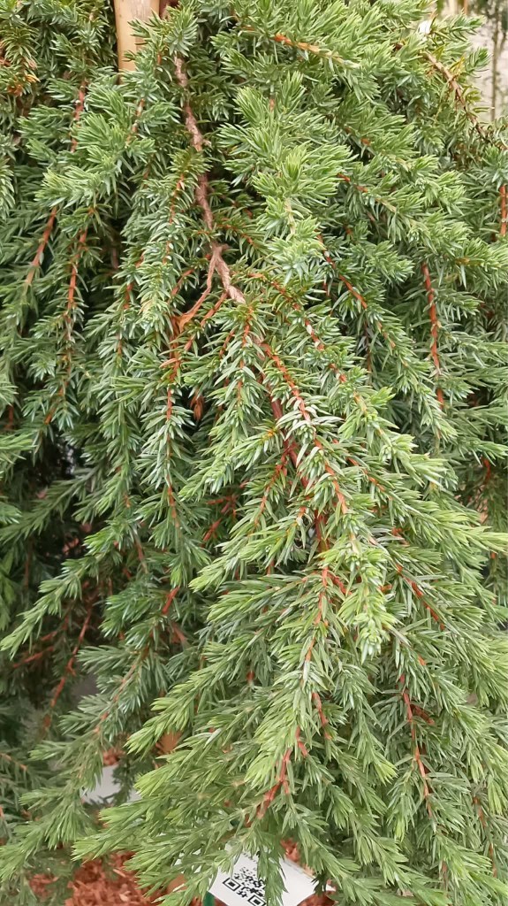Blad/nåler: Korte, friske grønne nåler med myk struktur; beholder grønnfargen godt gjennom vinteren.
