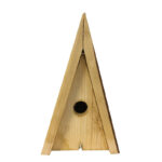 Fuglekasse i wigwam-form, veggmodell. Håndlaget og høvlet. Laget av oljebehandlet europeisk gran.
