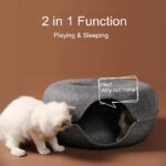 Fungerer som en kombinert kattetunnel/leke og katteseng. Det er plass på toppen og inne i selve "tunnelen" Praktisk filtstoff .