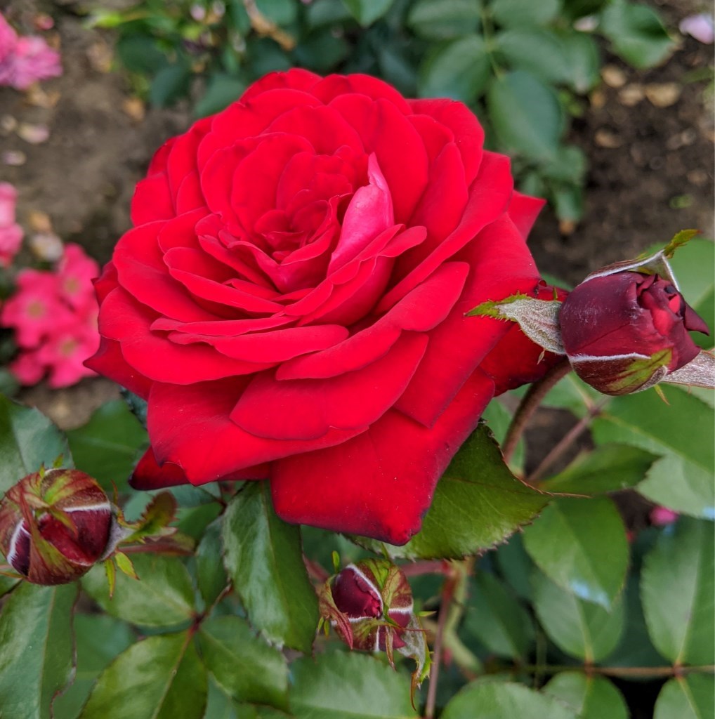 Den intense rødfargen gjør den spesielt fin sammen med hvite, gule eller blå blomster for kontrast.