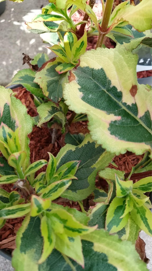 Bladverk: Det som virkelig kjennetegner ‘Magical Rainbow’ er bladene – de har flere nyanser, ofte med innslag av farger som grønt, kremhvitt, rosa og rødt i ulike kombinasjoner. Dette gir et levende, nesten regnbueaktig uttrykk i bedet selv når planten ikke blomstrer.