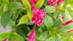 Blomster: Små til middels store, klokkeformede blomster i intens rød‑rosa/rosarød farge. Blomstene sitter mange sammen langs grenene, og gir et nesten “sprut av farge” når den blomstrer for fullt.