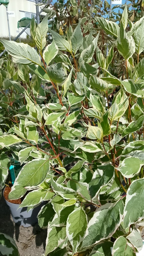 Cornus alba ‘Elegantissima’ er en svært populær, løvfellende prydbusk kjent for sine grønn- og hvitbrokete blader og røde greiner om vinteren. Den gir hagen et lyst og dekorativt preg gjennom hele året.