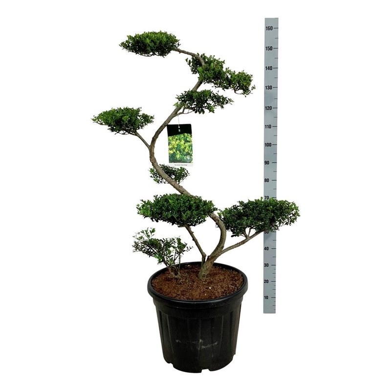 Små mørkegrønne blader som minner om buskbom. Hardførhet H2/3