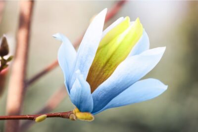 Magnolia ‘Blue Opal’ er en moderne prydmagnolia kjent for sine slående blå-lilla blomster og kompakte, elegante vekst. Den er spesielt populær i hager der man ønsker et unikt fargeinnslag tidlig på våren.