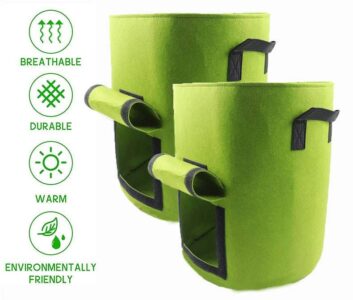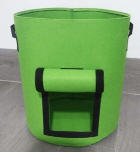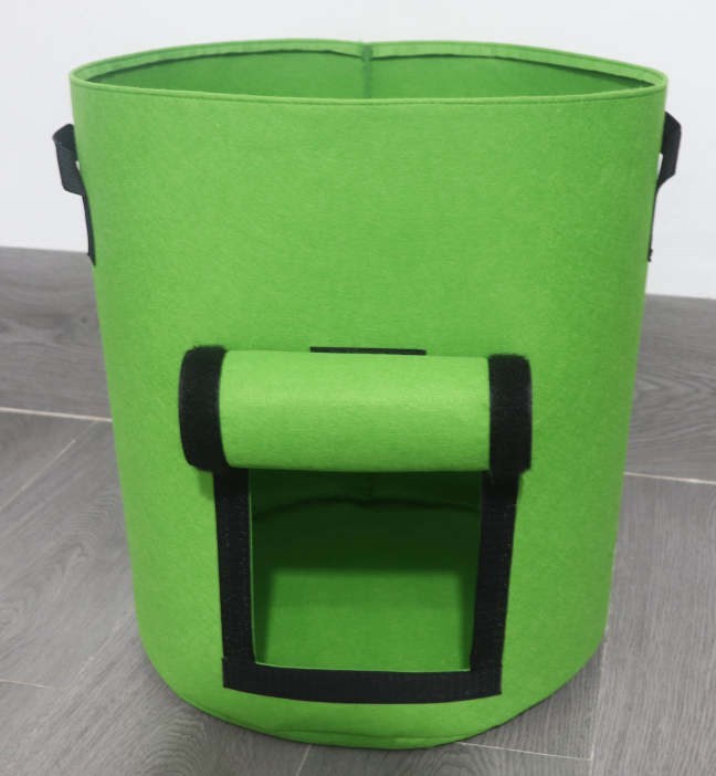 Miljøvennlig og robust Dyrkingsbag i pustende non-woven materiale. Svært gunstig for rotuviklingen. Benyttes til alt av planter , men er særlig godt egnet til poteter, gulrøtter m.m. Kommer en luke som kan åpnes / lukkes etter behov. Holdbarhet ca 5-8 år. Rommer ca 68 l. Høyde 45 cm og diameter 40 cm.