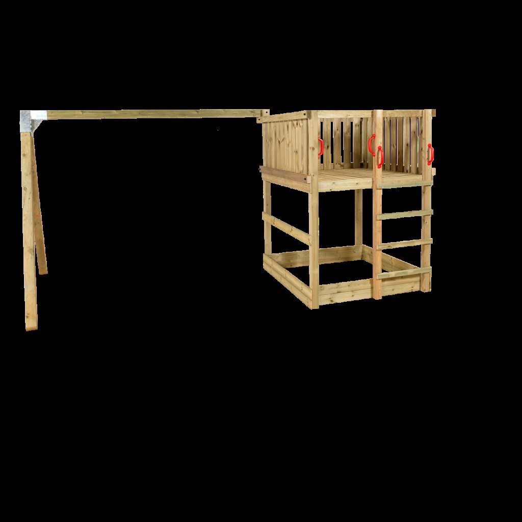 Leketårn med røde håndtak. Huskestativ og Cubic samlebeslag. Inkl. skruer og jordankre.