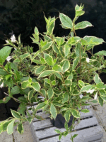 Roseklokkebusken Weigela Florida "Nana Variegata" er en flott prydbusk som blir 1,5 meter høy med rosa klokkeformede blomster. Blomstrer i juni – juli. Nydelig bladverk i fargene grønn med gul/hvite kanter. Pottestr. 3,5 liter, salgsstr. 50 – 60 cm. Herdighet H4-5.