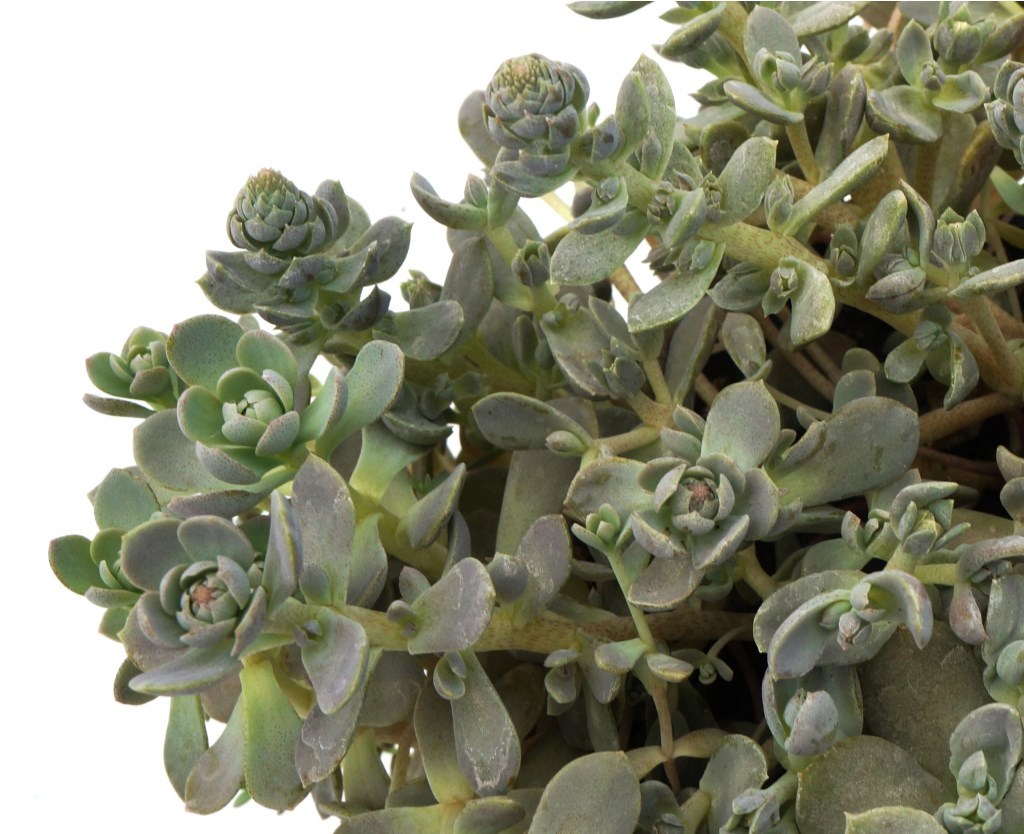 Dekorativ sedum med grålig farge , likt fargen på bladene til oliventrær .Danner rosetter hvor det om høsten kommer gule blomster. Klarer seg i tildels karrig jord. Må være godt drenert . H4/5