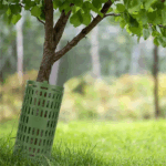 Solid og fleksibelt system for å beskytte trestammer . Systemet kan utvides (kobles sammen) både i bredde og høyde og passer derfor også til større trær. Hver plate er 37×25 cm.